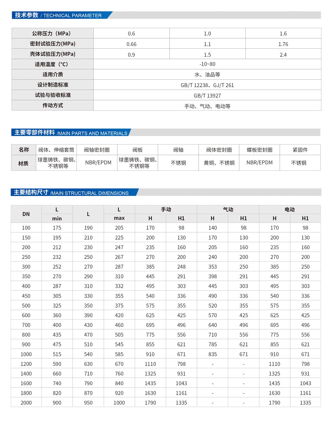 伸縮蝶閥集蝶閥與伸縮器于一體,主要用于給排水及電力、礦山等管道,既有蝶閥的使用功能,又具備伸縮器的功能,便于管道安裝與檢修,且對管道有一定的保護作用,根據不同工況要求,伸縮蝶閥可采用硬密封及軟密封兩種形式。