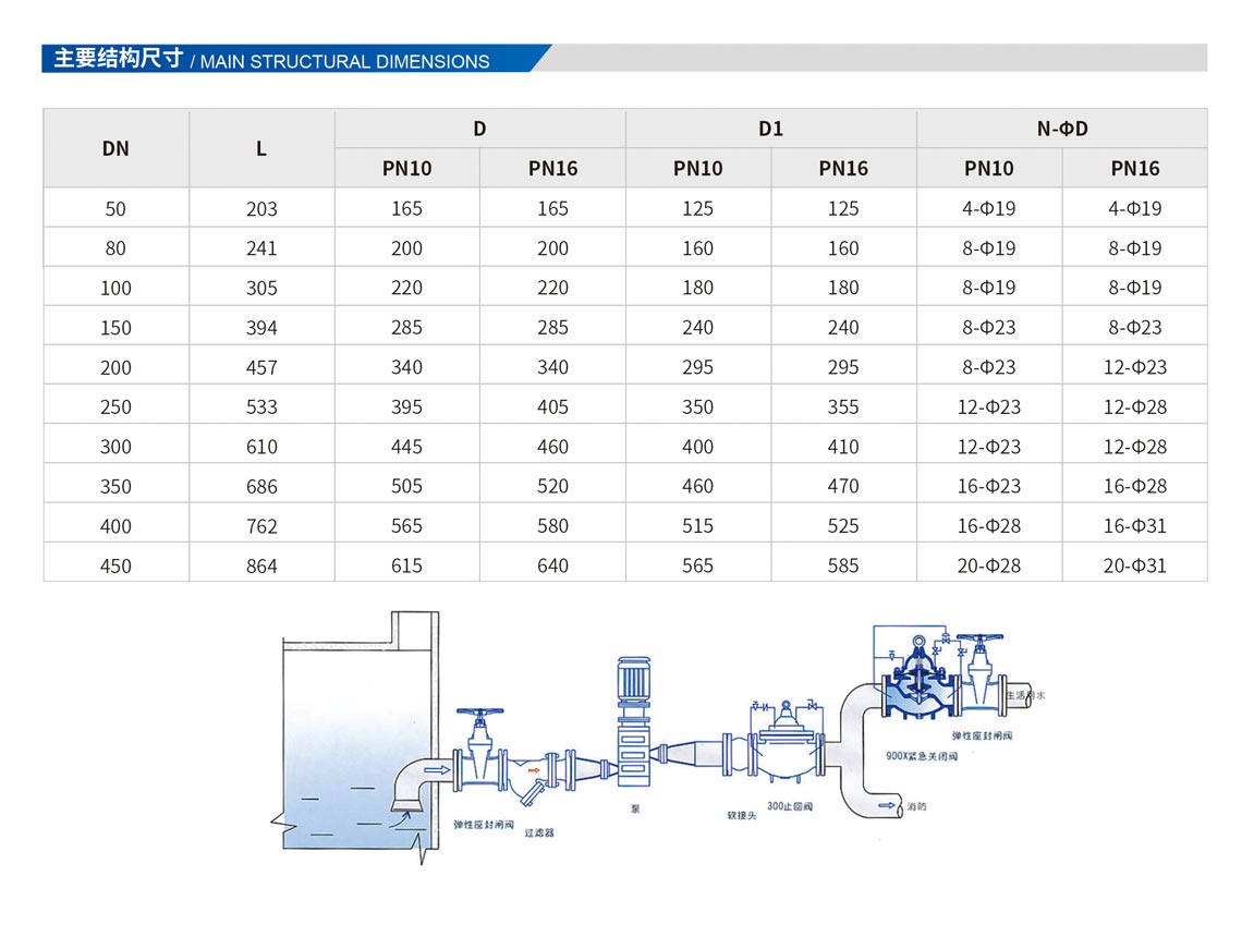 900X緊急關(guān)閉閥,是一種用于消防用水與生活用水并聯(lián)的供水系統(tǒng)中,用來(lái)調(diào)配供水方向的閥門(mén)。當(dāng)火災(zāi)發(fā)生時(shí),消防急需大量用水,900X緊急關(guān)閉閥立即切斷生活用水,確保足夠的消防用水:當(dāng)消防停止用水壓力減小時(shí),閥門(mén)自動(dòng)打開(kāi),呈常開(kāi)狀態(tài),恢復(fù)生活供水。該閥使系統(tǒng)無(wú)須另設(shè)專門(mén)的消防單獨(dú)供水管網(wǎng),大大地節(jié)約了建設(shè)成本和用水量。閥門(mén)控制靈敏度高,安全可靠,調(diào)試簡(jiǎn)便,使用壽命長(zhǎng)。