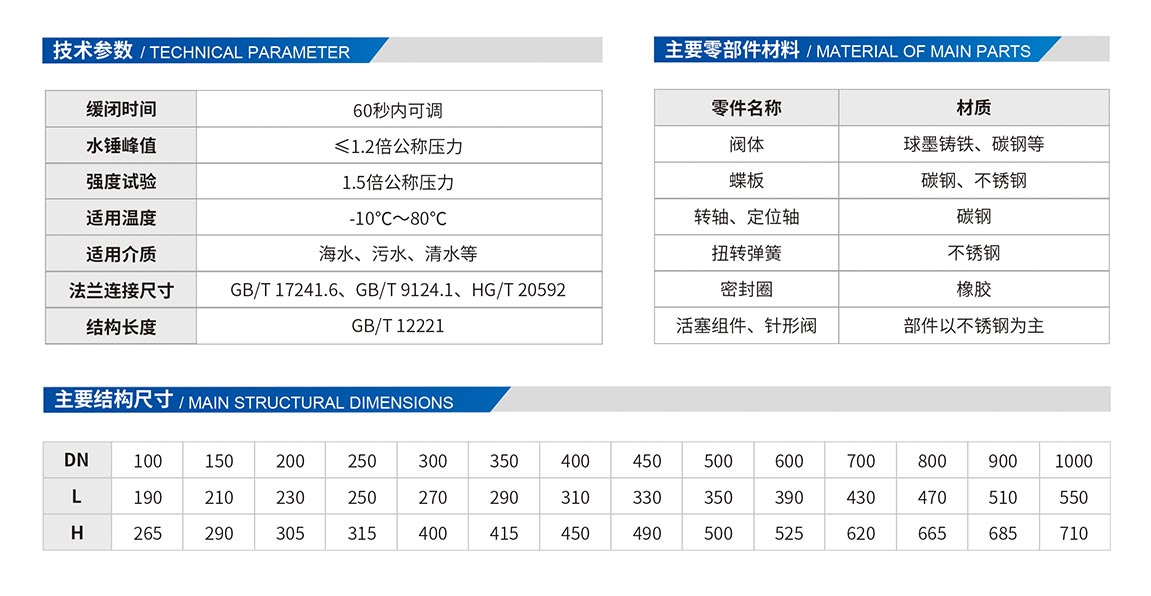 3、通過閥體兩側(cè)的活塞及控制活塞的油壓系統(tǒng)達(dá)到緩閉作用,噪聲小。